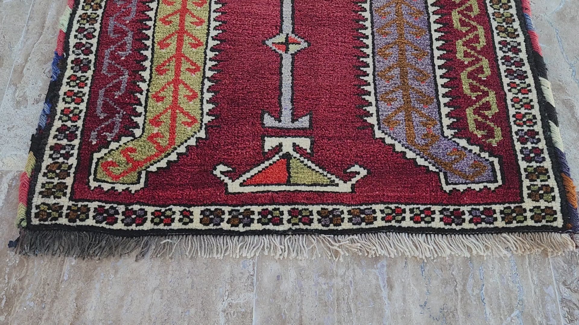 Small Vintage Turkish Rug: Konya Style Wool Mat, 2'10" x 1'11"