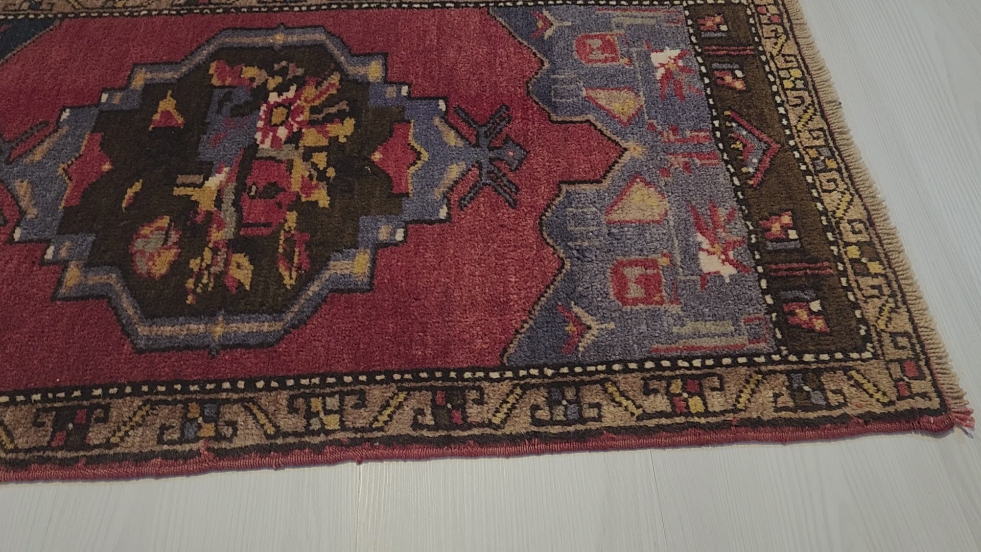 Vintage Turkish Rug, Handmade Wool Anatolian Mat (3'3"x1'9")