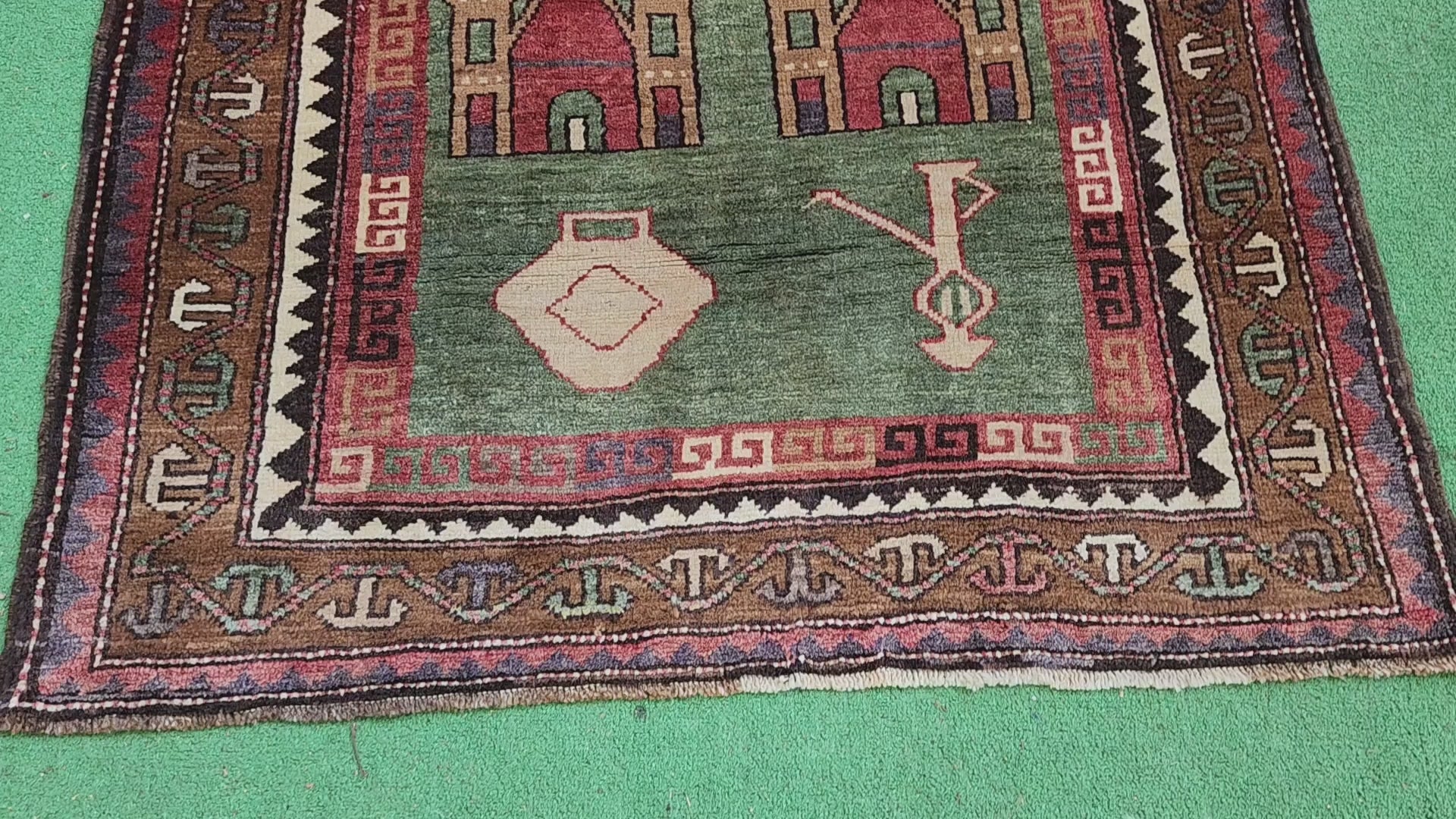 Tapis de prière Kars vert et marron, ''4'' x 5'8''