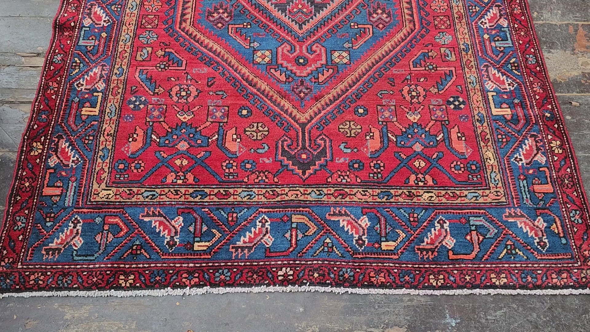 Persian Red and Blue Vintage Rug, 6 ft 6 in x 4 ft 4in