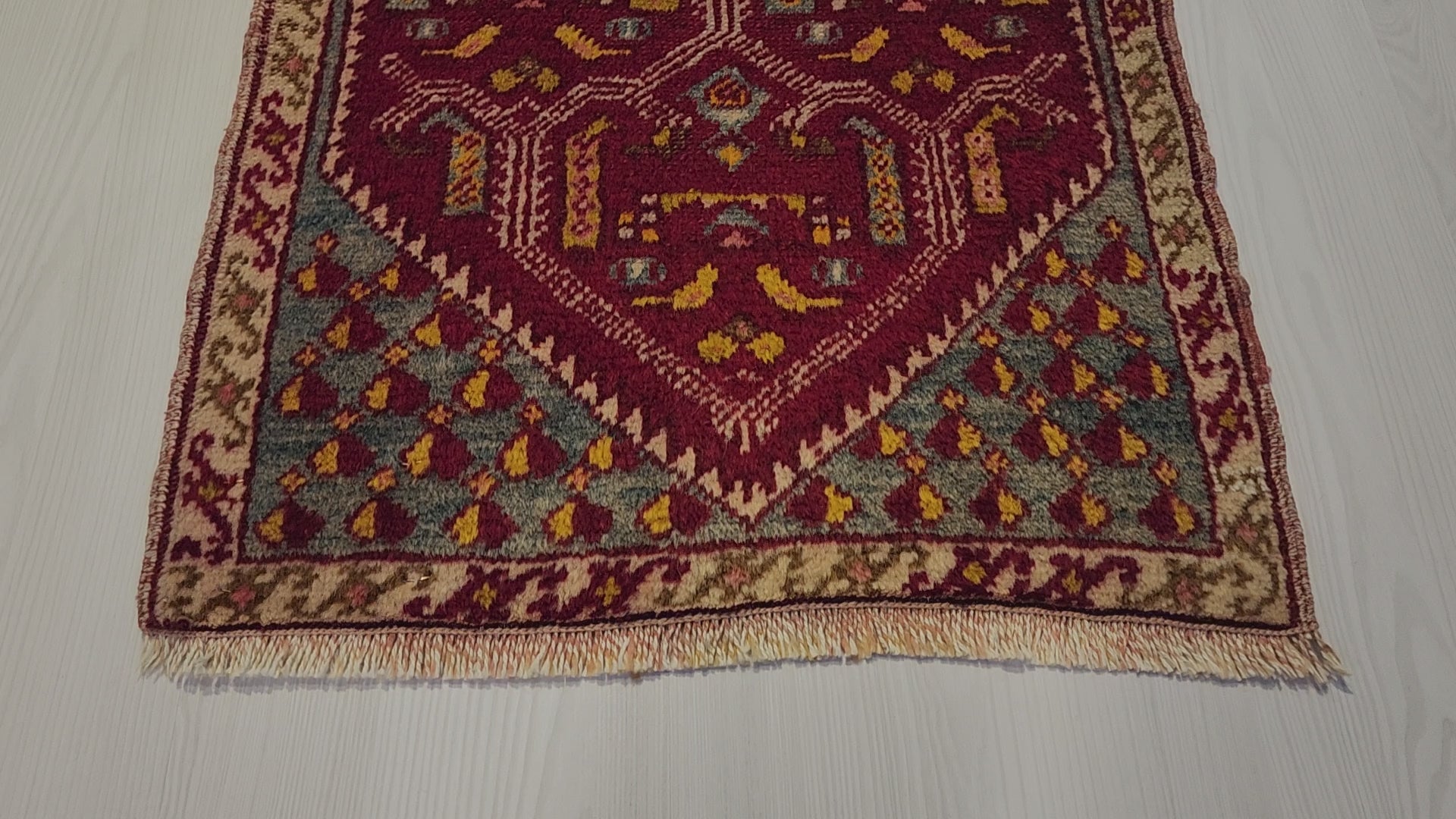 Vintage Anatolian Turkish Rug: Distressed Wool Bohemian Rug (1'7''x2'3'')
