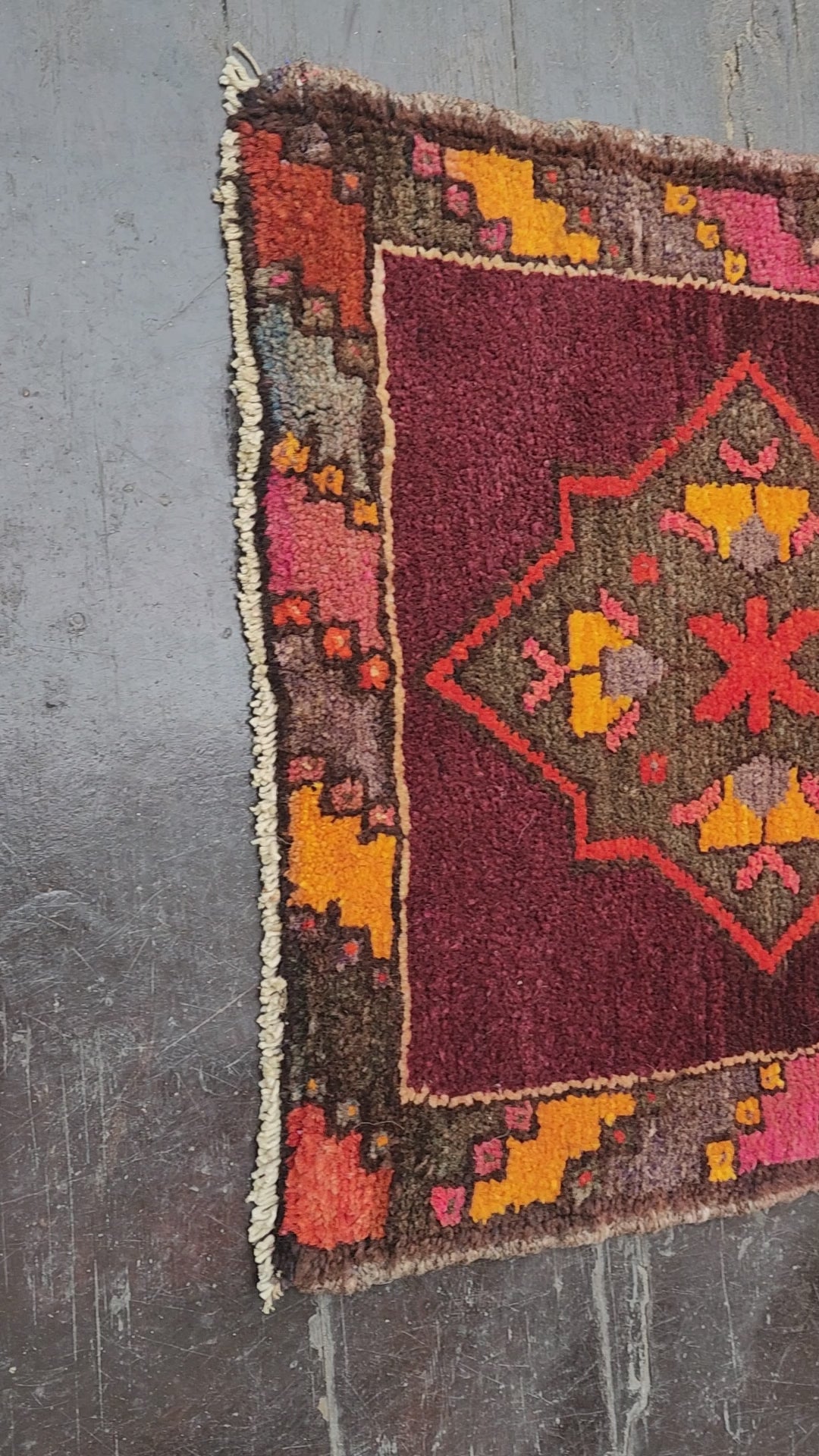 Tapis turc vintage, petit tapis, 2'9"x1'8"