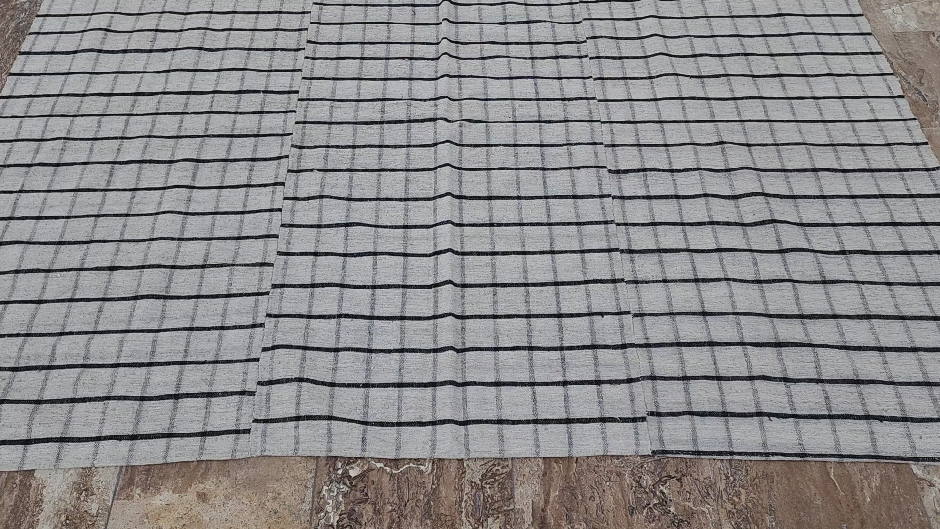 Flat-woven Kilim rug with a grid pattern in white and black, 6'4''x9'4''