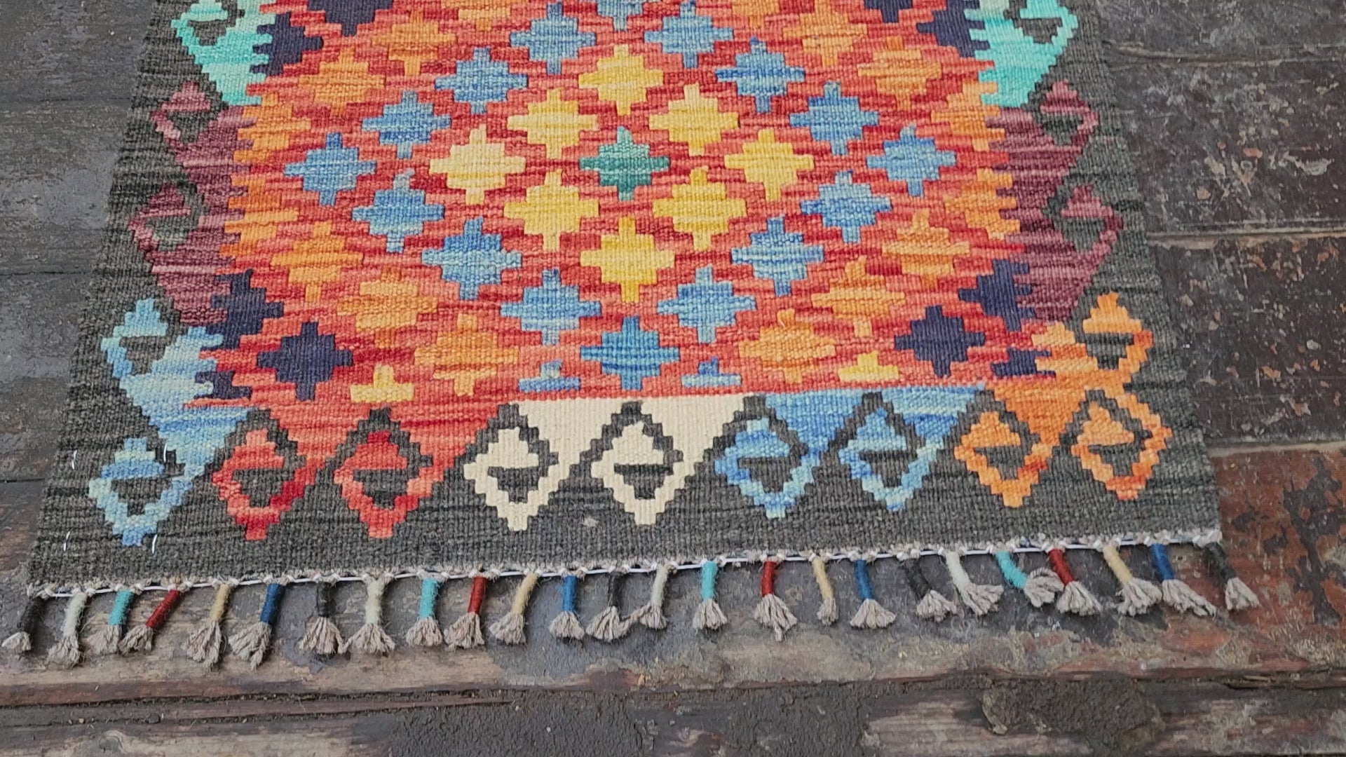 Small Afghan Maimana Kilim Rug 3 x 2 ft Multicolor Turkish Southwest Aztec Boho Rustic Handmade Natural Wool Persian Door Mat Rug