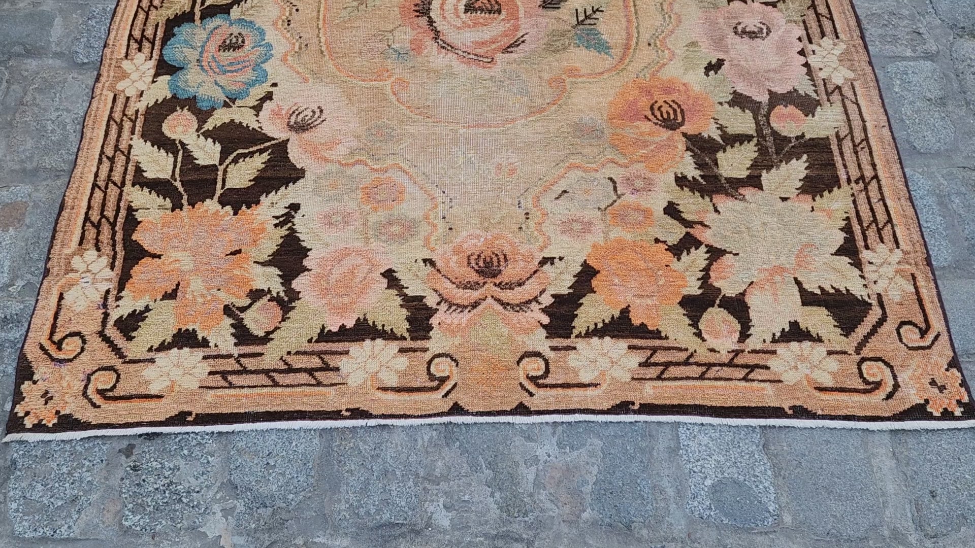 Antique Moldovan carpet woven in the early 1900's is still in a very good condition with its pastel color tones.