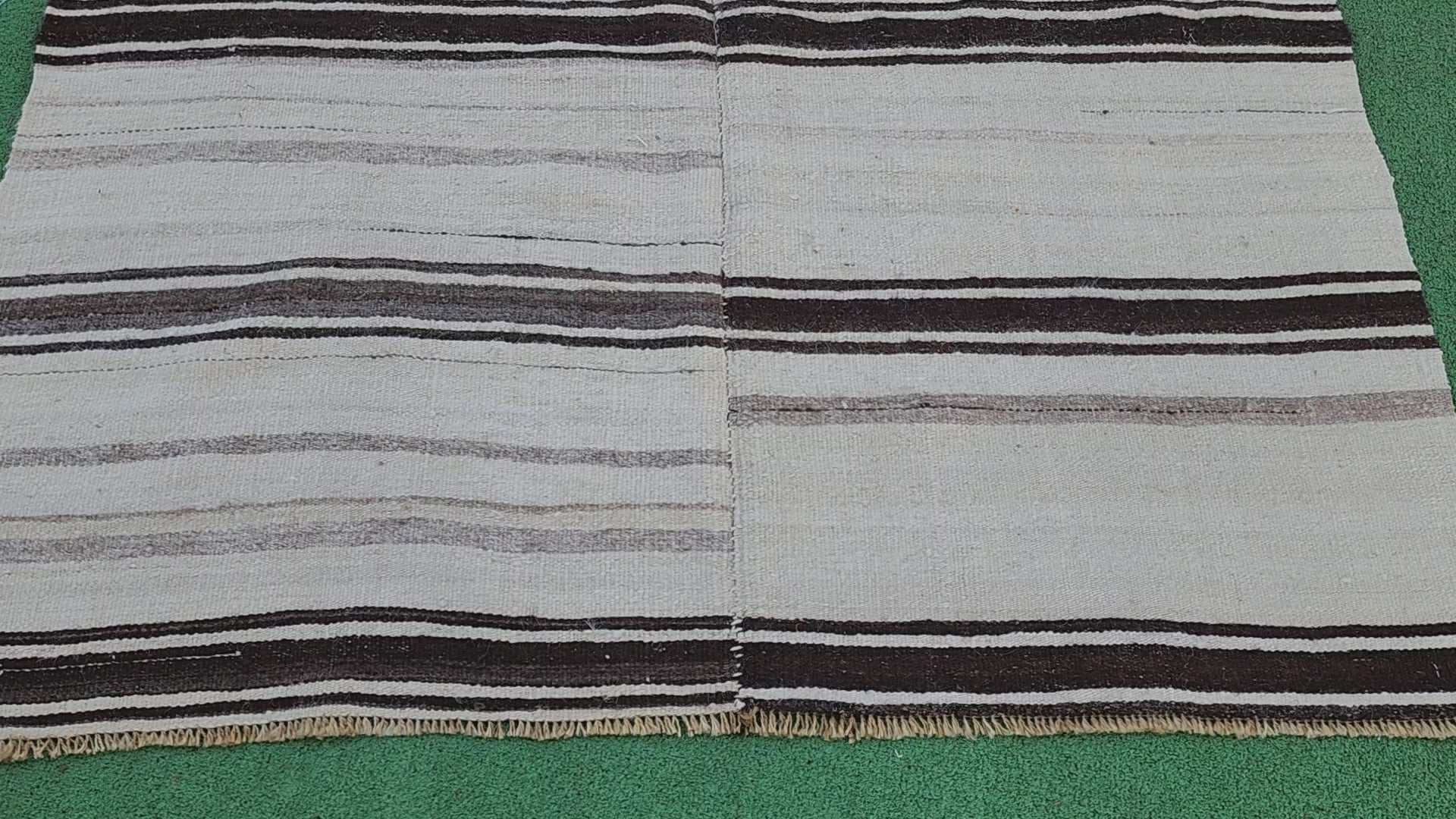 Black stripe handwoven kilim rug, 6'7''x4'5''