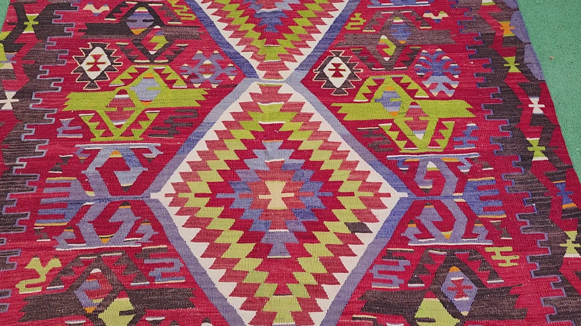 Vintage Esme kilim rug hand-woven in the 60s and in very good condition. Esme (pronounced Eshme) is a very famous weaving village in Usak, Turkey