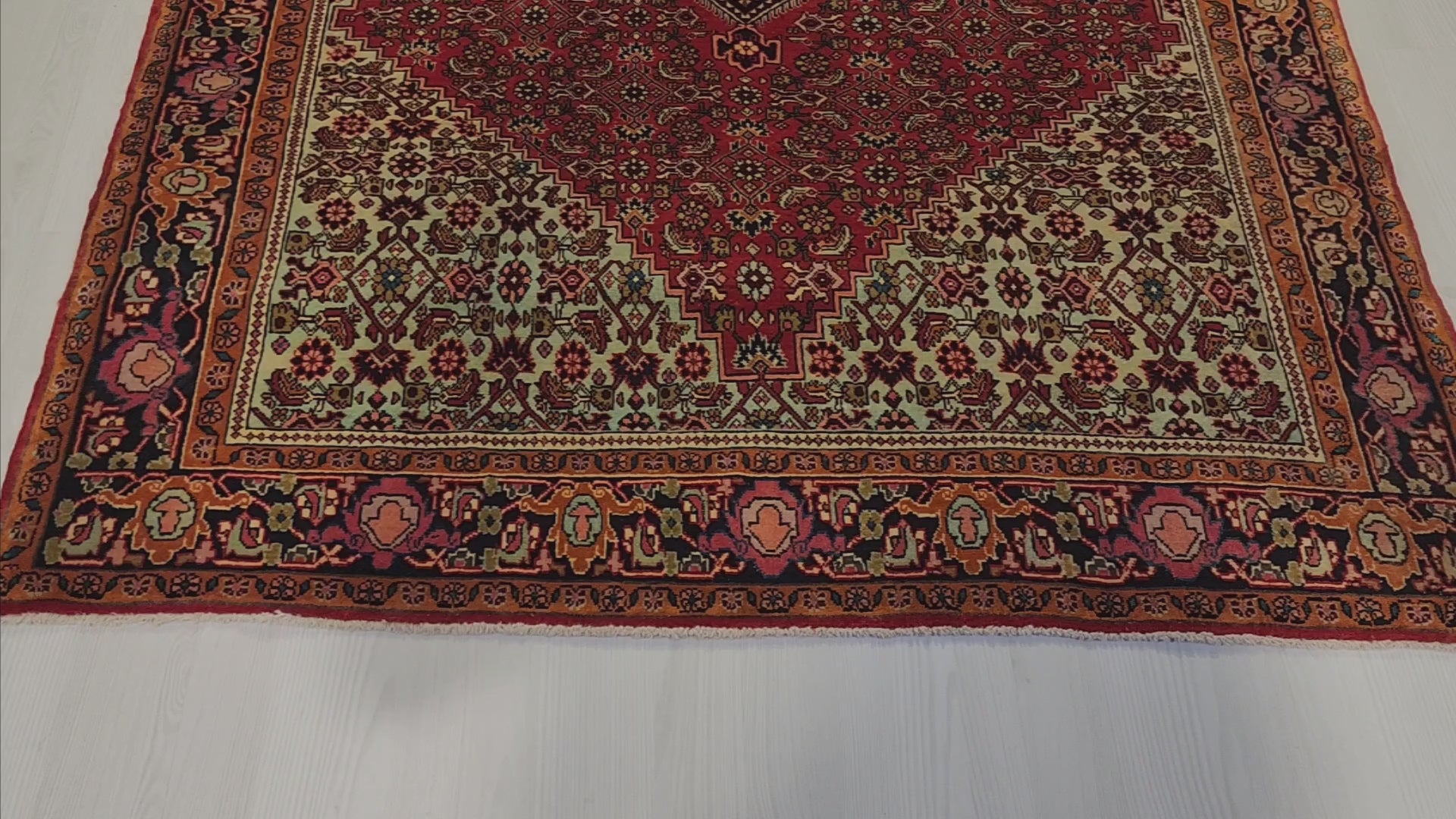 Handmade Wool Persian Rug, 5'5" x 3'9", Red, Orange, Green Vintage Turkish Rug