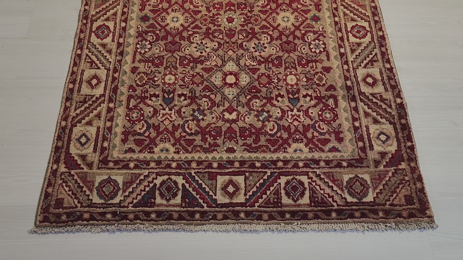 100% Handmade, Vintage, Wool, Knotted Pile Runner Rug made in Turkey by Tribal Weavers up to 60 years ago. We source all of our rugs from the Villages and Towns in which they were originally made, selecting only those of the highest quality of original materials and workmanship.