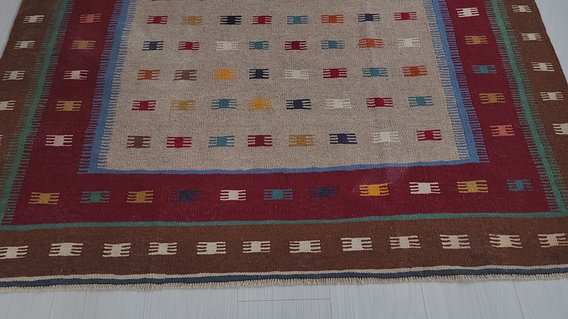 Konya Turkey Colorful Kilim Rug Boho Deco Rug, Traditional Tribal Nomadic Design Rustic Rug, Bohemian Decor Handspun Wool 5'1''x6'6''