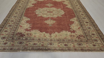 Large Persian Red and Green Living Room Handmade Carpet 9'3''x7'7''