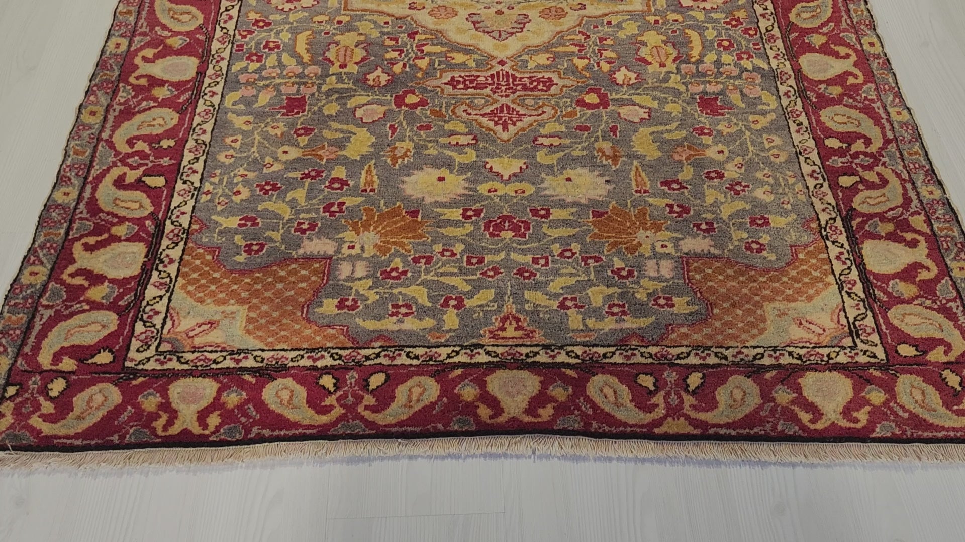 Persian Rug 5 ft 10 in x 4 ft 2 in Gray Brown and Red Persian Rug for the Living or Dining Room Handmade from Natural Wool in Turkey