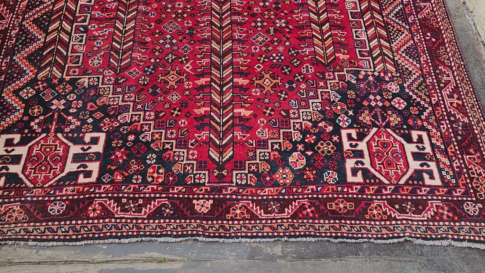 We are proud to offer this fine example of early 20th Century Traditional Oriental weaving. Measuring 8'2" x 5'9'' (250 cms x 180 cms) this rug has been skilfully and finely woven, according to traditional design patterns in Cherry Red, Royal Blue and Cream/White, of naturally sourced and vegetable dyed sheep wool. Produced by nomads and villagers in Far South Eastern Anatolia Circa 1930s, these stunning Oriental rugs are some of the few that merge both rustic nomadic and refined town/village weaving techniques. Finely woven and intricately patterned, this rug is more influenced by the fine Oriental weavings intended for commercial trade than the more rudimentary utilitarian village weavings made for domestic use. The quality and condition of this rug is first class as the top- grade sheep wool coloured by natural/vegetable dyes used in its' construction and the skill of the weaver have ensured that the longevity and beauty of the rug is preserved, even though it has most certainly "outlived" the shepherds, shearers, spinners, dyers, craftsmen and artists who all contributed to its' creation