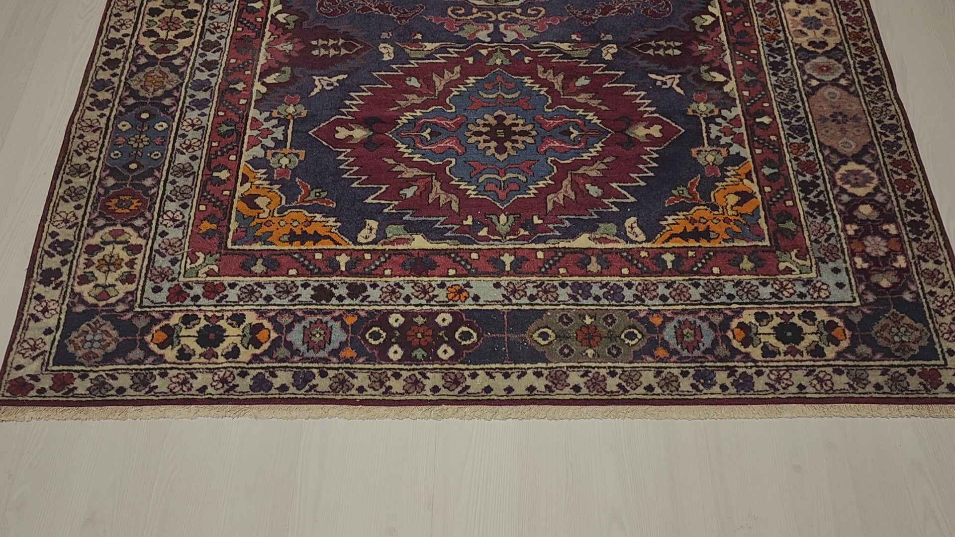 We are proud to offer this fine example of early 20th Century Traditional Oriental weaving. Measuring 6'10'' x 4'10" (210 cms x 147 cms) and weighing over 8 kgs, this rug has been skillfully and finely woven according to traditional design patterns in Red, Blue, Orrange and Brown naturally sourced and vegetable dyed sheep wool. Produced by nomads and villagers in Far South Eastern Anatolia circa 1930s, these stunning Oriental rugs are some of the few that merge both nomadic and village weaving techniques. Finely woven and intricately patterned, this rug is more influenced by the fine Oriental weavings intended for commercial trade than the more rudimentary utilitarian village rugs made for domestic use. The quality and condition of this rug is first class as the top grade sheep wool colored by natural/vegetable dyes used in its' construction and the skill of the weaver have that the longevity and beauty of the rug is preserved, even though it has most certainly "outlived" the shepherds, shearers, spinners, dyers, craftsmen and artists who all contributed to its' creation