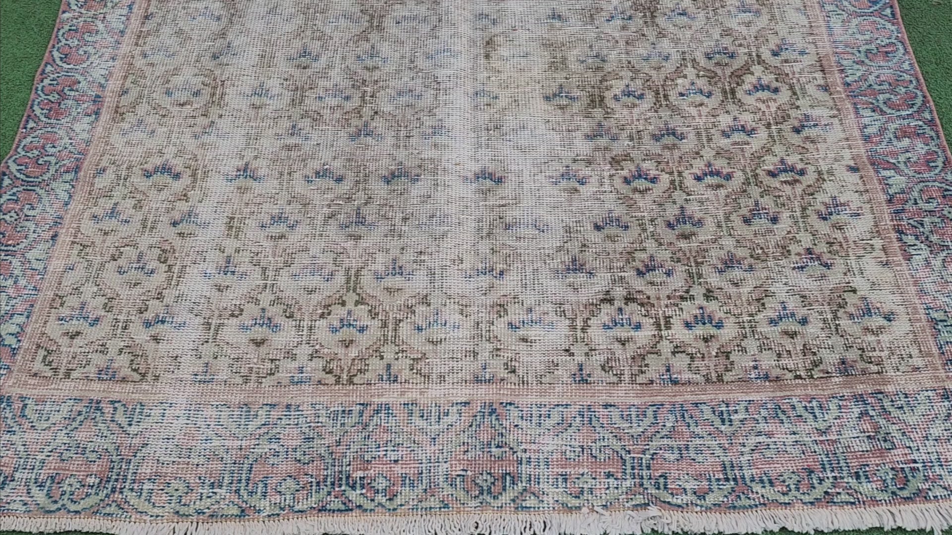 Vintage Persian Rug, 8 ft 10 in x 5 ft 4 in, Large Turkish Rug in Beige Blue and Brown
